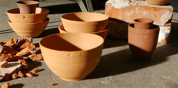 aus dem gefundenen Ton gedrehte und gebrannte Keramische objekte