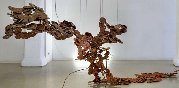 Diese, von ihrem Wesen her Modular gedachte Arbeit, besteht aus ca. 600 einzelnen Keramikplatten, Schrauben und alten Bewährungen, die je nach Installation verschiedene Formen annehmen kann.