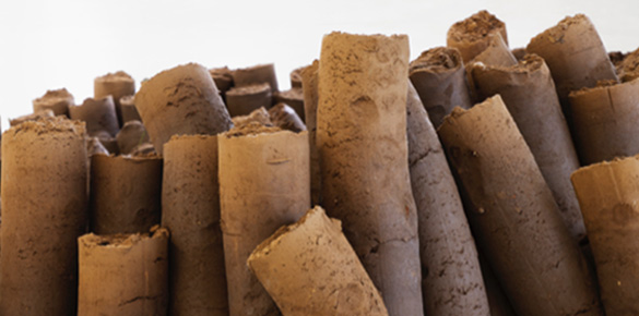 eine Skulptur aus, mit einem Extruder produzierten Tonwürsten
